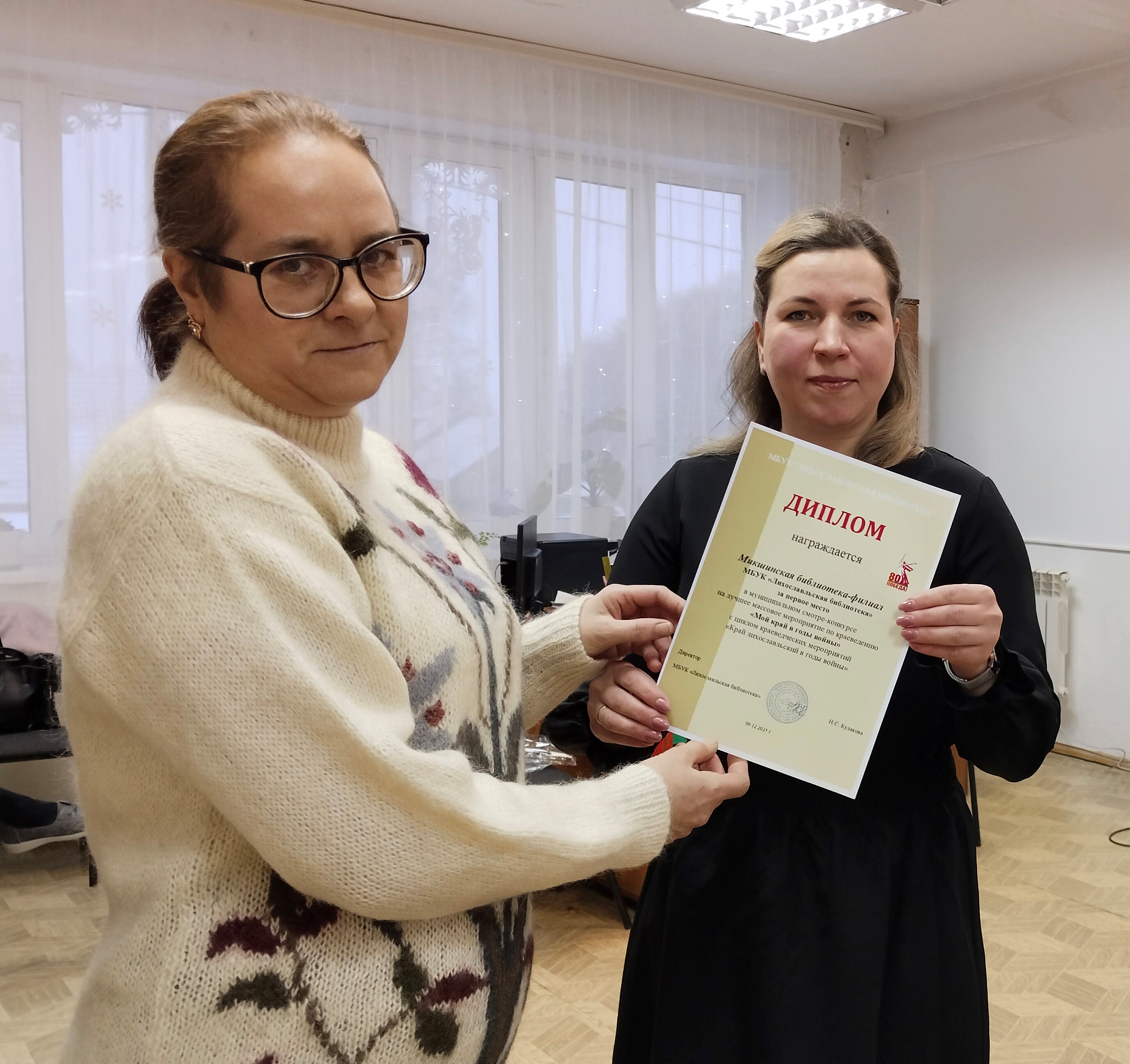 На традиционном семинаре в конце года подвели итоги конкурса на лучшее краеведческое мероприятие «Мой край в годы войны» (2025). Победители - Микшинская, Станская, Вёскинская и Крючковская библиотеки – награждены грамотами.