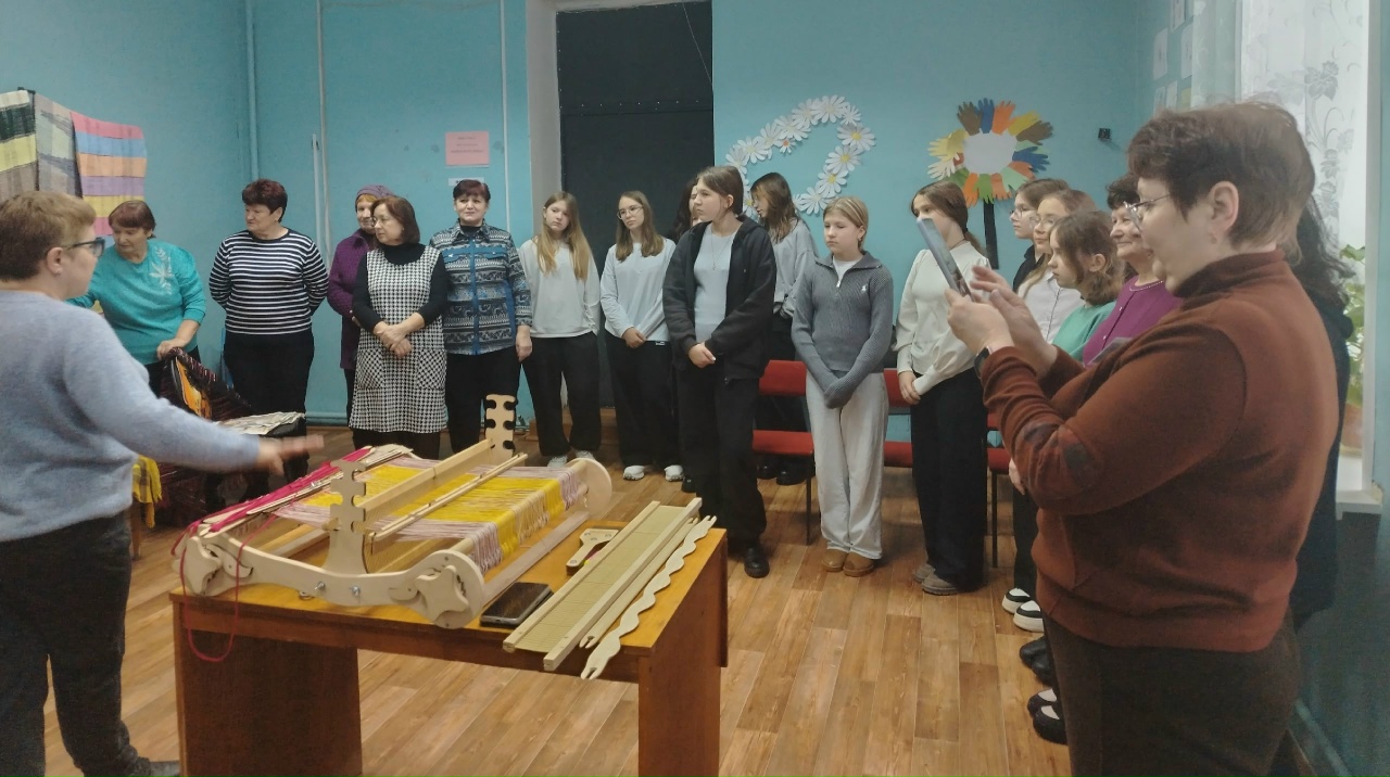 Выяснилось, что интерес к традиционным ремёслам у калашниковцев есть, и не малый: среди посетителей были и дети школьного возраста, и взрослые. Все они активно задавали вопросы о ткачестве и вышивке. Мастер увлекательно рассказала землякам разных поколений о ручном ткачестве, традиционной народной вышивке, вязании на спицах и крючком.