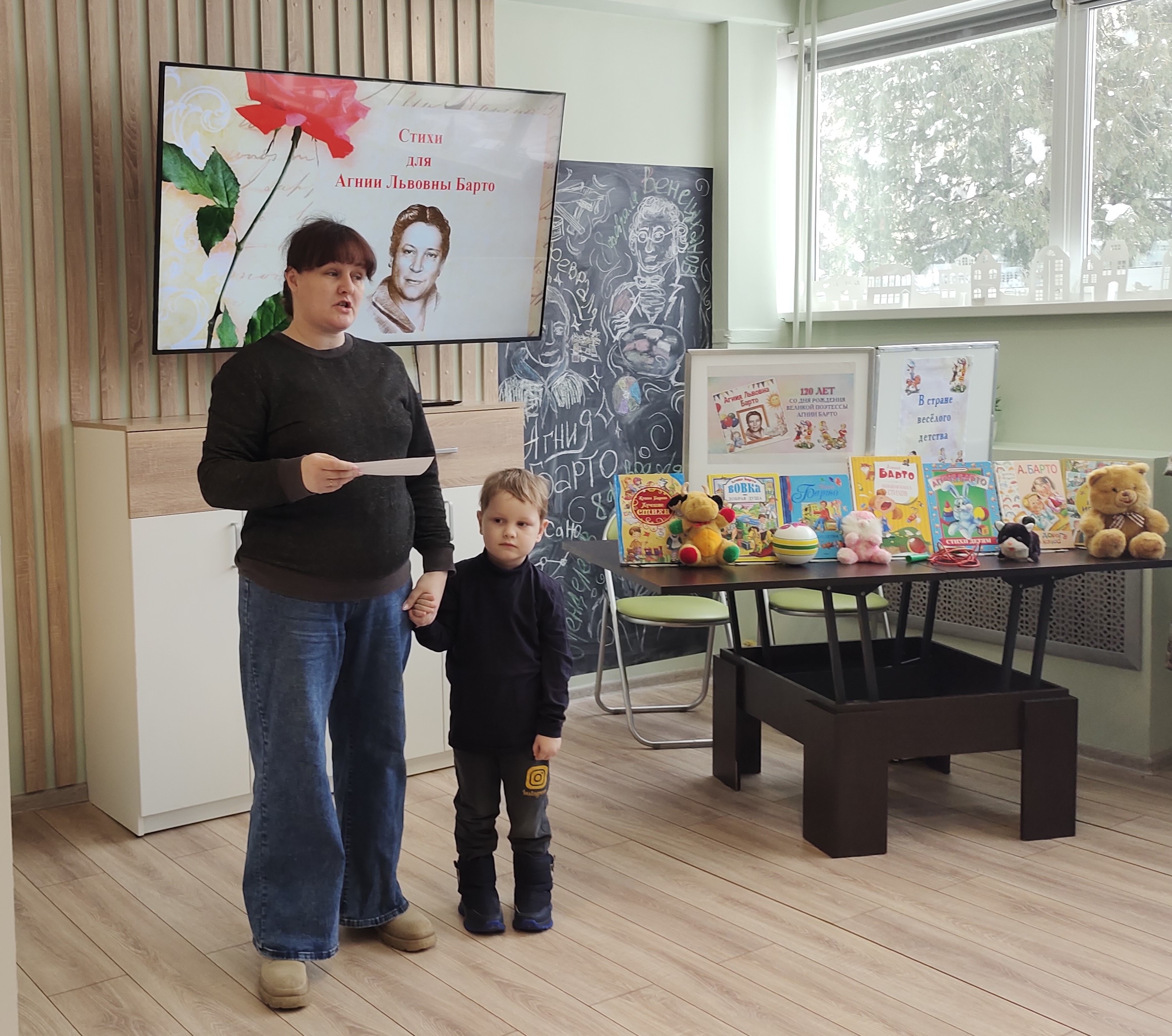 Семьям с детьми представили слайд-презентацию и рассказали о творчестве поэтессы и писательницы, любимой многими поколениями. Юные воспитанники семейного читательского объединения отгадали литературные загадки и рассказали наизусть полюбившиеся стихи.