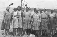 Эта фотография переносит нас в середину прошлого века. Станские и удворинские женщины трудятся на колхозном сенокосе: А.Н. Виноградова, Е.М. Соколова, Н.И. Розова, М. Максимова, М.Н. Романова, Е. Смирнова, Н. Орлова, А. Виноградова, М.И. Тимофеева…