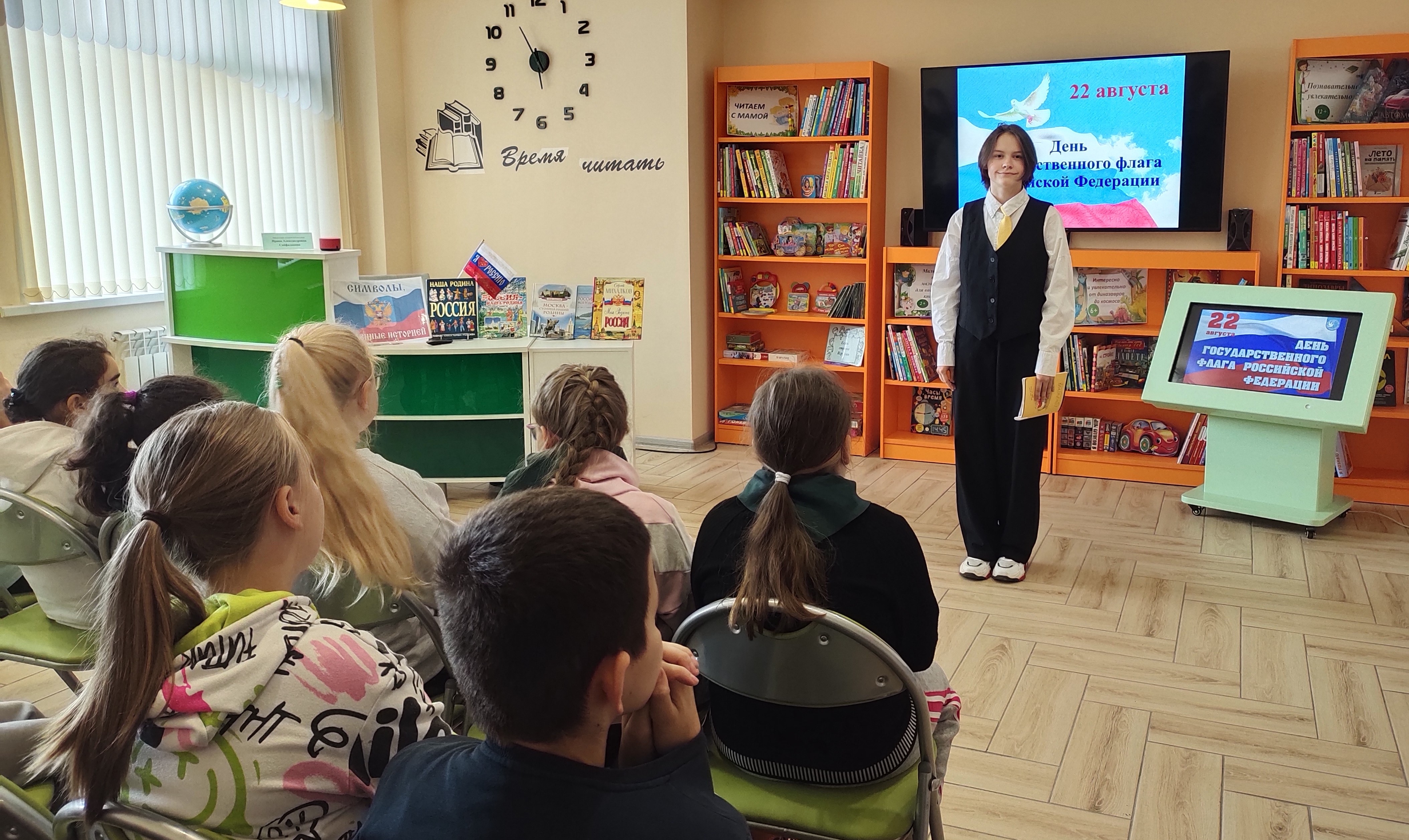 20 и 22 августа в детской библиотеке для воспитанников летних школьных лагерей и юных жителей города состоялся час истории «День рождения флага», посвящённый Дню государственного флага России.