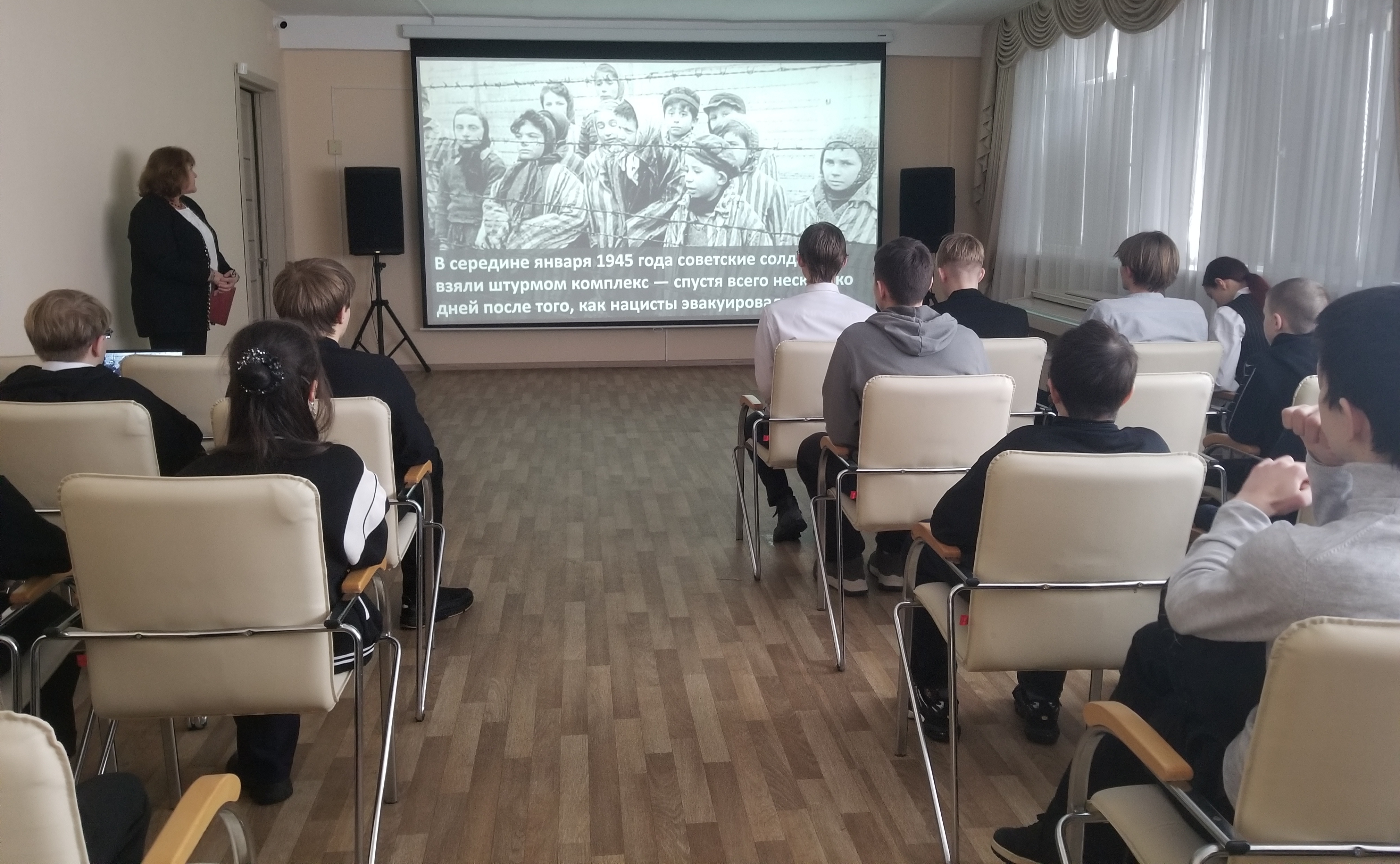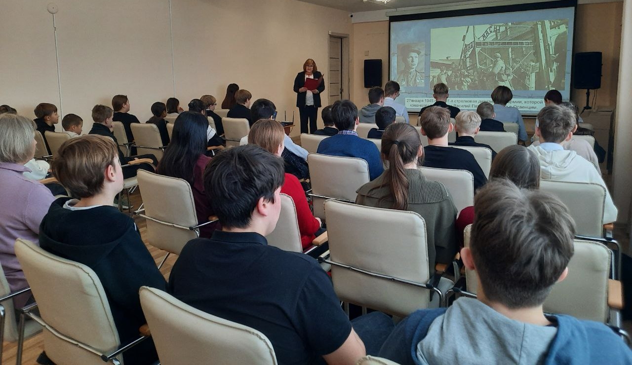 29 января в Лихославльской библиотеке им. Владимира Соколова в рамках Недели памяти жертв Холокоста состоялся урок-реквием «Освободители Аушвица». Преподаватель средней школы № 2 Светлана Владимировна Зверева рассказала лихославльским школьникам о трагедии и освобождении узников концлагеря «Аушвиц» (Освенцим), ставшего в истории символом преступлений нацизма. Особое внимание уделили освободителям-землякам, уроженцам Тверской области: с их биографиями юных зрителей познакомили участники театральной студии «Маска».