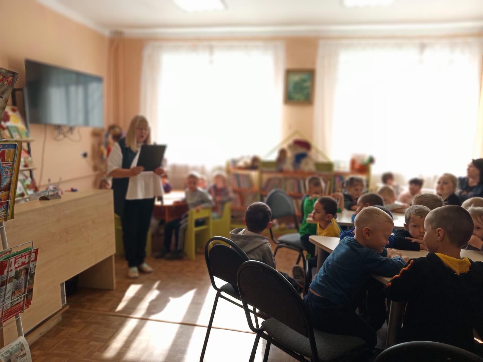 11 сентября сотрудники Калашниковской библиотеки провели в детском саду «Светлячок» интерактивный литературный час по сказке Корнея Чуковского «Федорино горе». Это поучительное и доброе произведение дети не просто слушали: иммерсивная выставка полностью погружала малышей в сказочную атмосферу, поэтому реакция была яркой и живой.