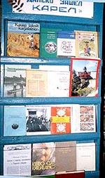 Практически вся литература находится на двух постоянных выставках “Далеко зашел карел” /на фотографии/и “Язык – душа народа”. Используя публикации периодических изданий делаем выставку “Как живешь, карел?”. Все желающие могут пользоваться этими материалами /всего около 60 книг и журналов/.